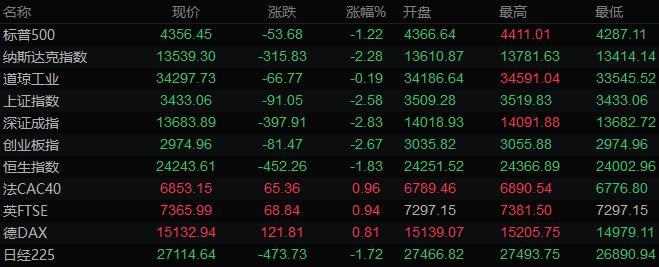 美股收盘情况:标普500指数下跌1.2%,报4356.45点;道琼斯工业平均指数下跌0.2%,报34297.73点;纳斯达克综合指数下跌2.3%,报13539.29点;纳斯达克100指数下跌2.5%,报14149.12点;罗素2000指数下跌1.5%,报2004.035点。