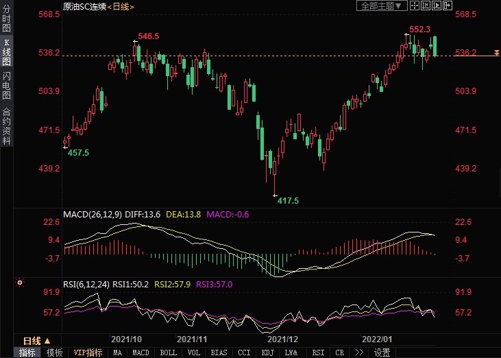 阻力位:INE原油552.0,美油88.54
