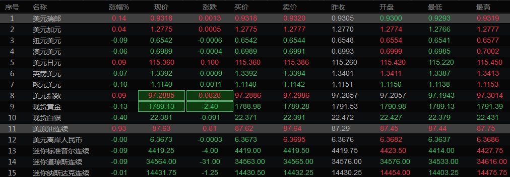 美元指数基本持稳,尾盘报97.21,一周累计1.65%的涨幅为6月以来最大;美元上周五兑G-10货币涨跌互见,月末的再平衡资金流总体利好美元。