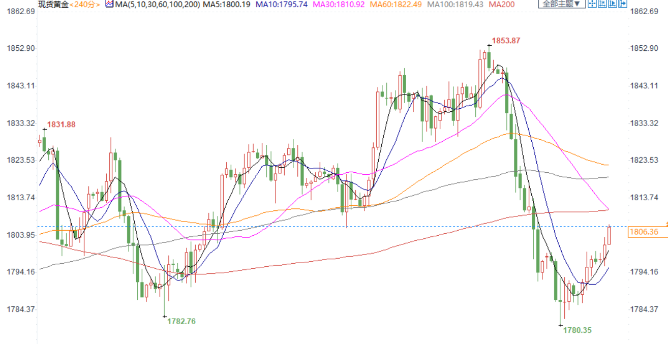 现货金价4h图