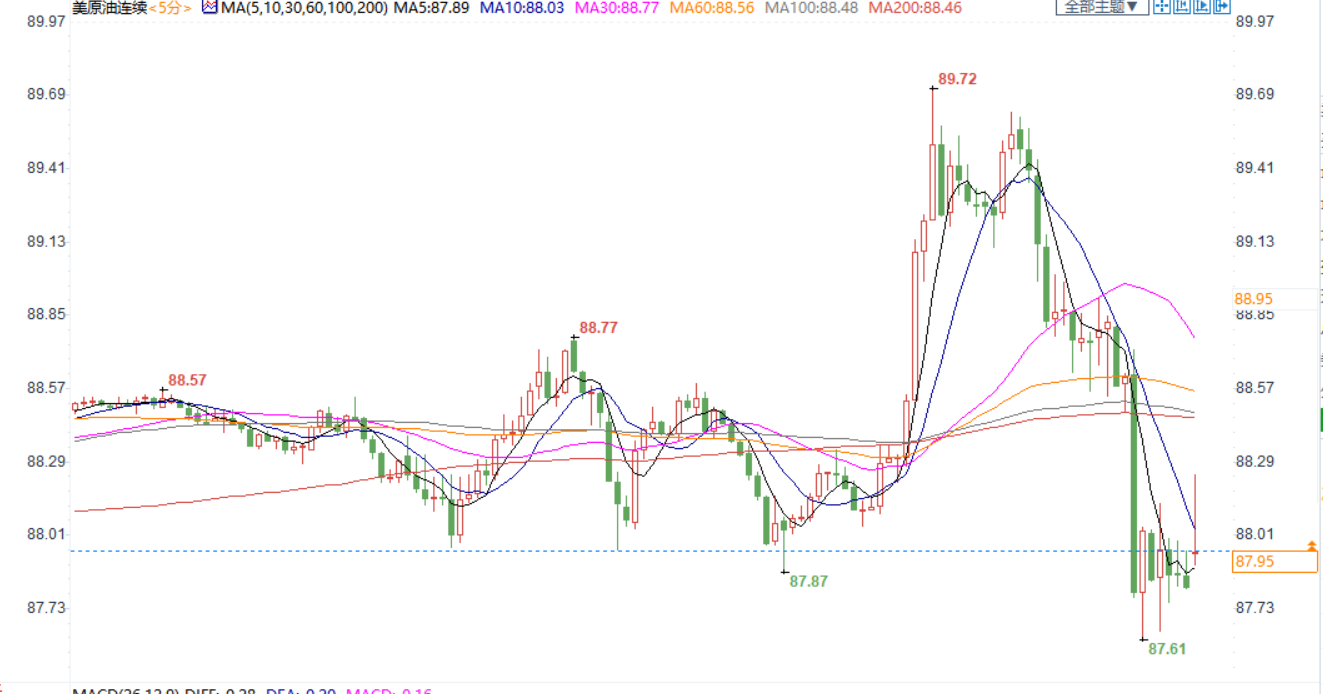 美国原油价格5分钟图显示
