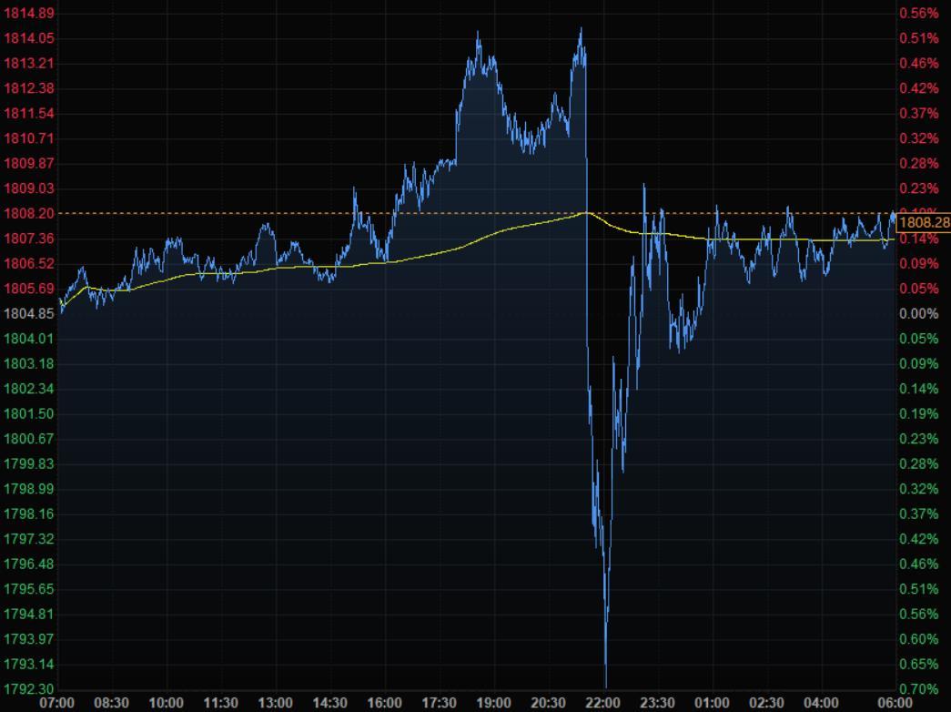 金价周五在震荡交投中小幅走高,尾盘收于1808美元附近,非农数据公布后一度下挫至1792.30美元/盎司,对通胀的担忧日益加剧,帮助缓冲了美元走强和美债收益率上升带来的压力,此前美国公布意外乐观的就业数据;不过金价涨势受限,指标10年期美债收益率触及逾两年高位,此前乐观的美国就业数据支撑了美联储加息的理由,美元上涨,使黄金对海外买家来说变得昂贵。