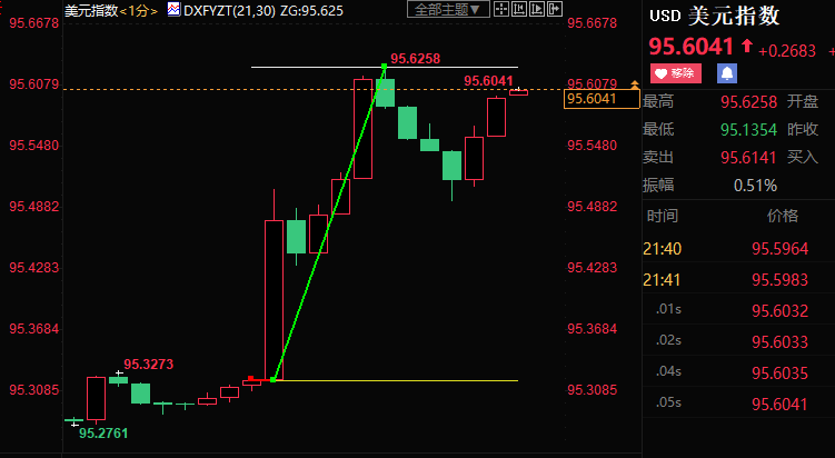 北京时间周五(2月4日)21:30,美国劳工部公布1月非农就业报告,表现远超预期,平均时薪也大幅向好。截至发稿,现货黄金跳水13美元至1800美元关口附近,美指跳涨近30点至95.625。