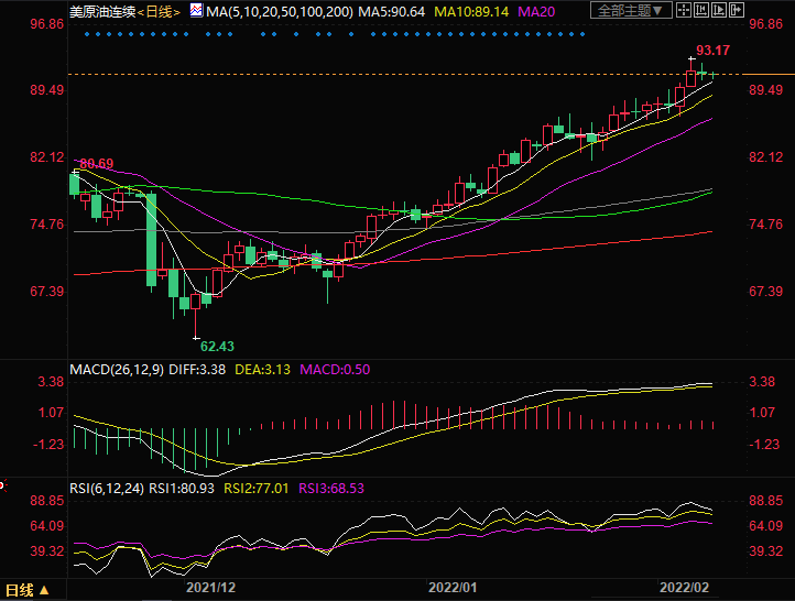上方阻力关注2月4日高位93.17,进一步关注95.00以及97.00。