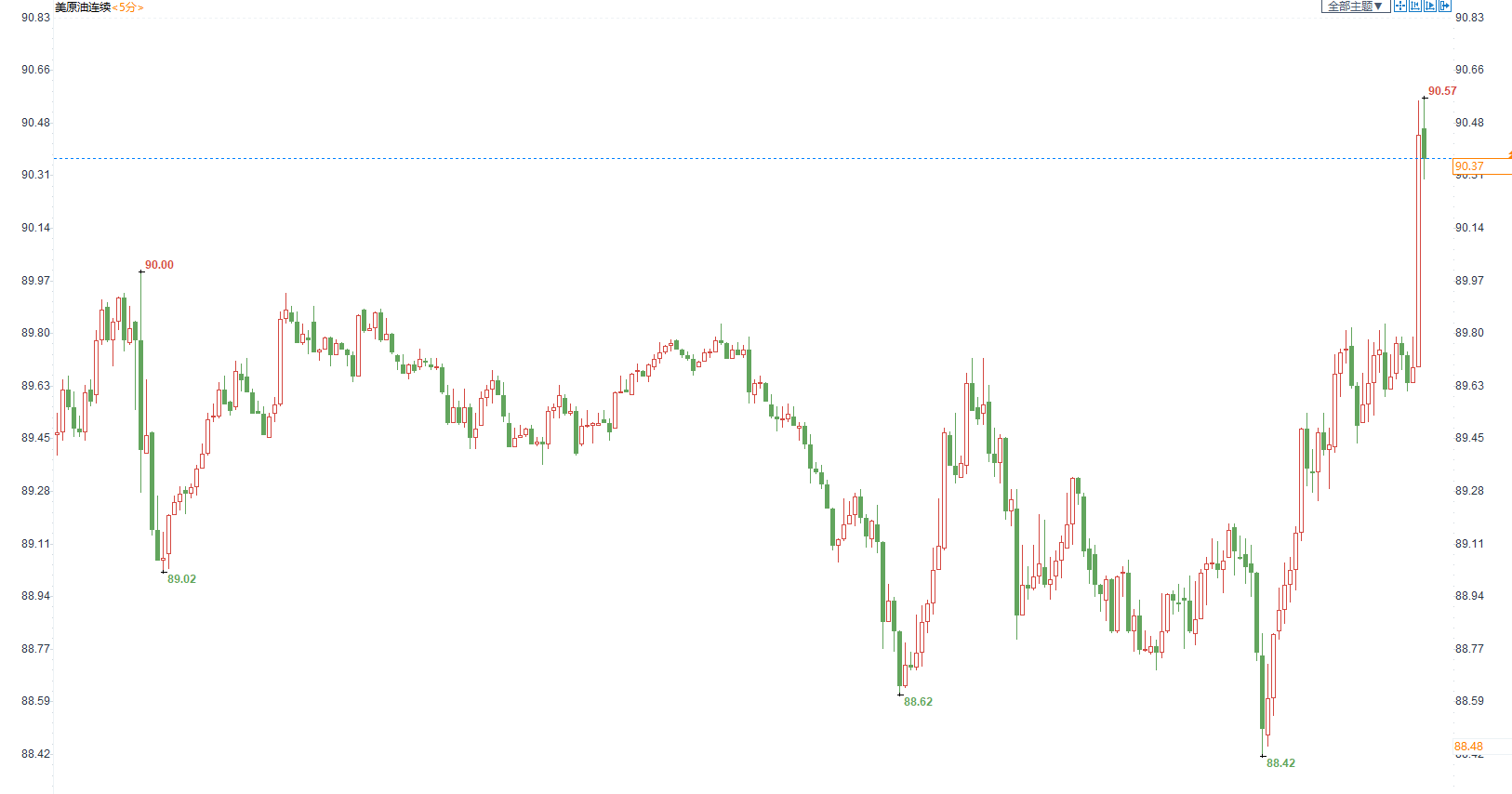 美国原油价格5分钟图显示