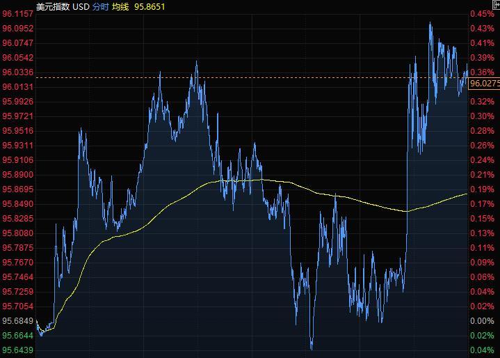 美元指数尾盘涨0.36%至96.02,美国国债上涨,2年期国债收益率下跌7个基点至1.516%;今日稍早,美元走势缺乏方向,投资者消化美国密西根大学公布的2月消费者信心指数初值。该报告显示,美国消费者信心在2月初跌至10多年来的最低水平,因预期通胀在短期内将继续上升。