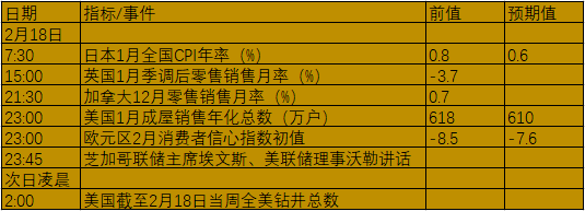 2月14日-20日当周重要数据及事件前瞻:美国“恐怖数据”和中国通胀来袭
