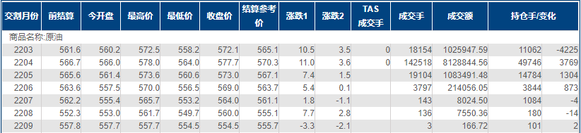 上海原油价格上涨1.94%,再创逾三年新高,主力合约2204终盘收于577.7元/桶,涨11.0元/桶。