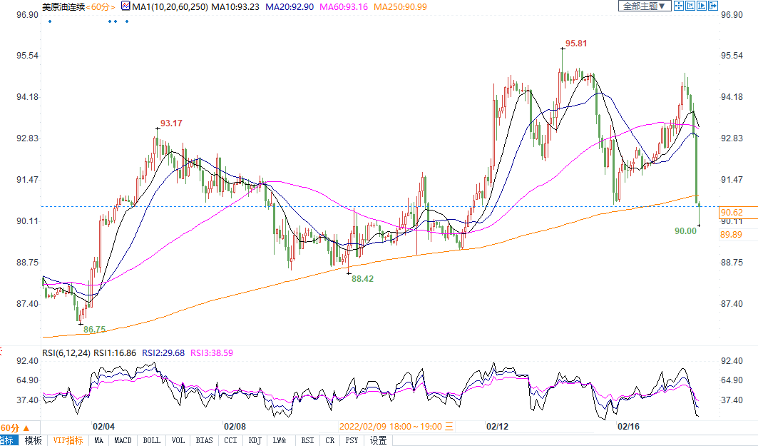 周三(2月16日)布油尾盘下跌1.27%,报收92.1美元/桶。早前伊朗首席核谈判代表Bagheri Kani称,经过数周的密集谈判,我们比以往任何时候都更接近于达成协议,油价回吐日内涨幅并收低。