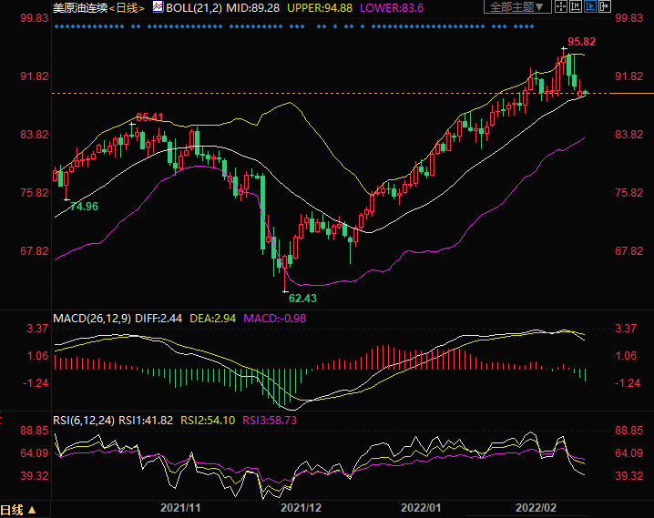 上方阻力关注昨日高位91.51,进一步关注2月4日高位93.17以及2月4日高位95.82。
