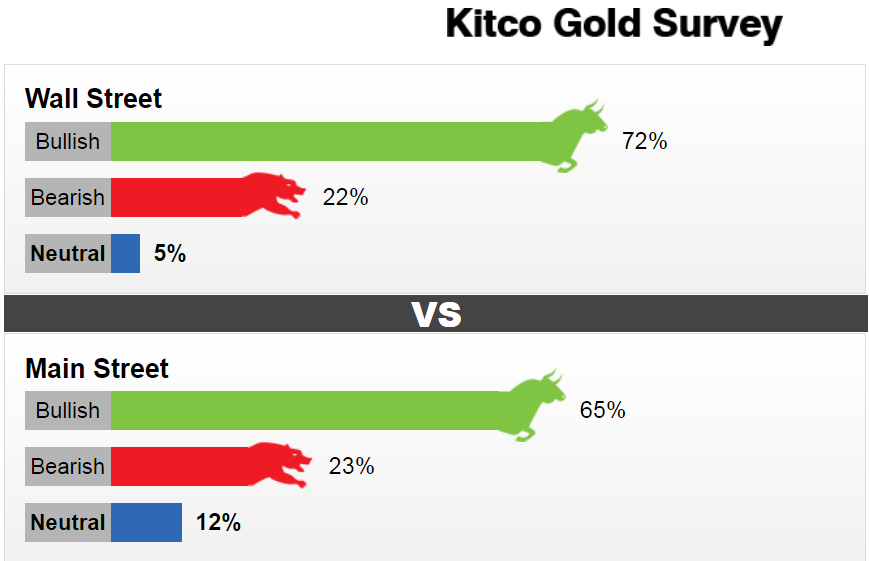 本周,18 位华尔街分析师参与了 Kitco News 的黄金调查。在参与者中,13人或72%的人看涨黄金;三位分析师(或22%)看空下周金价;一位分析师(或5%)在短期内对黄金持中性态度。