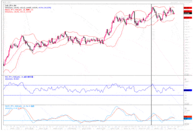 因乌克兰和俄罗斯危机的一系列事态发展令投资者紧张不安,日元在避险推动下,兑美元近期从低点脱离出来,目前美元兑日元也回落至115.00附近。本周美俄外长将举行会谈,会谈能否向良好的局面发展,仍难以预料。若是会谈无解决结果,则在避险作用继续推动下,日元料仍会存在回升的机会。而如果俄乌局势能有缓和的机会,则在美日利差将不断拉大的前景下,日元年初以来的行程的颓势将会延续。技术图形上,美元兑日元仍保持在上升通道之中,汇价也勉强企立在20日均线上方,技术指标处在均衡区域,暂时还看不到有衰落逆转走势的迹象。但是一旦美元兑日元跌穿115.00大关的支撑,美日的下行幅度将会加深。