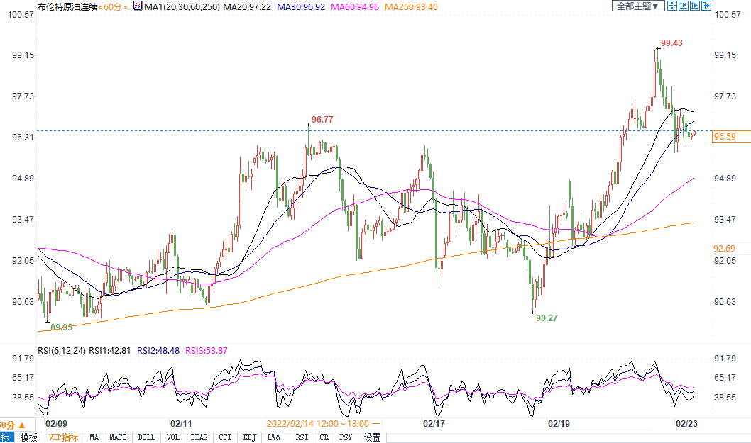 周二(2月22日)美油尾盘收涨1.55%,报收91.61美元/桶。俄罗斯总统普京宣布承认乌克兰东部地区两个分离势力自封的共和国,并签署命令向该地区派遣“维和部队”之后,美油盘中一度涨超5%。而美国总统拜登似乎避免了对俄罗斯实施最严厉的制裁,油价回吐日内大部分涨幅。