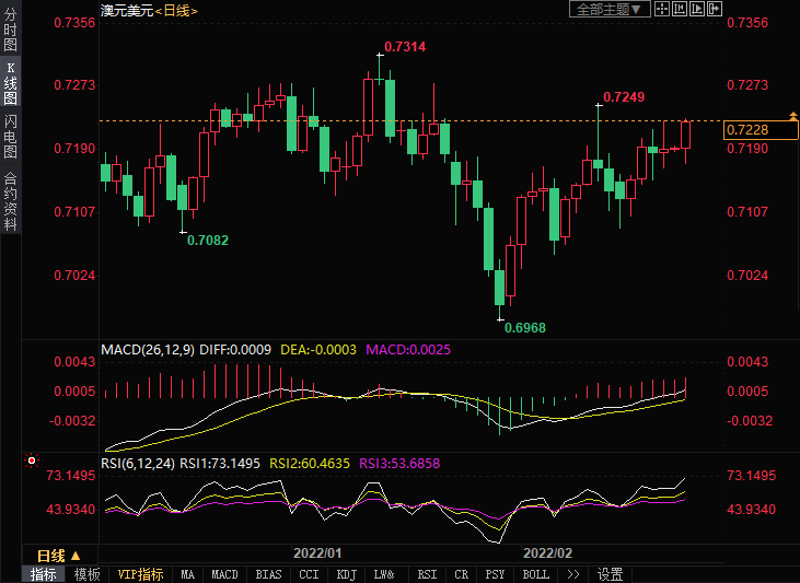 周二(2月22日)欧洲时段,澳元兑美元升至近两周新高,尽管市场避险情绪仍然高涨,但对澳洲联储最终加息的押注不断上升,成为支撑澳元的关键因素。