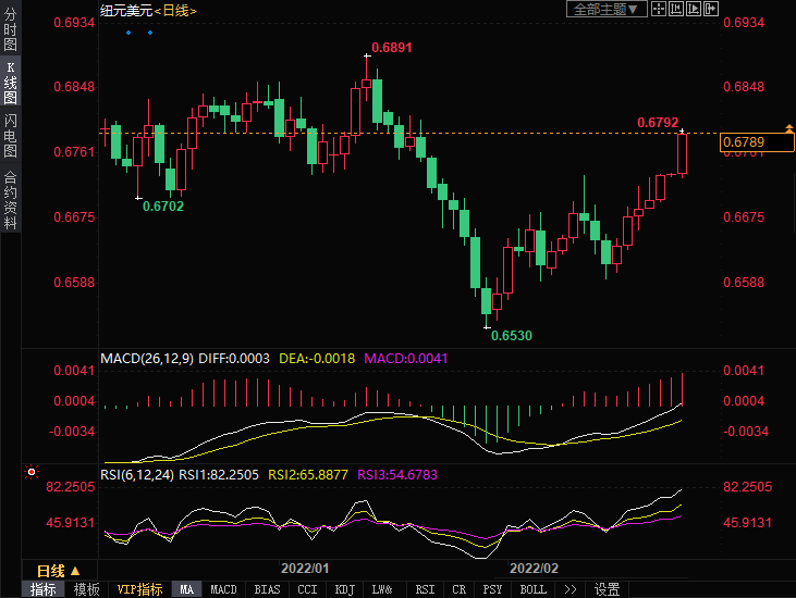 周三(2月23日)纽元兑美元延续了此前鹰派新西兰联储推动的涨势,欧洲市场早盘在逾一个月高点0.6790区域附近交投,早前新西兰联储强势加息25个基点。