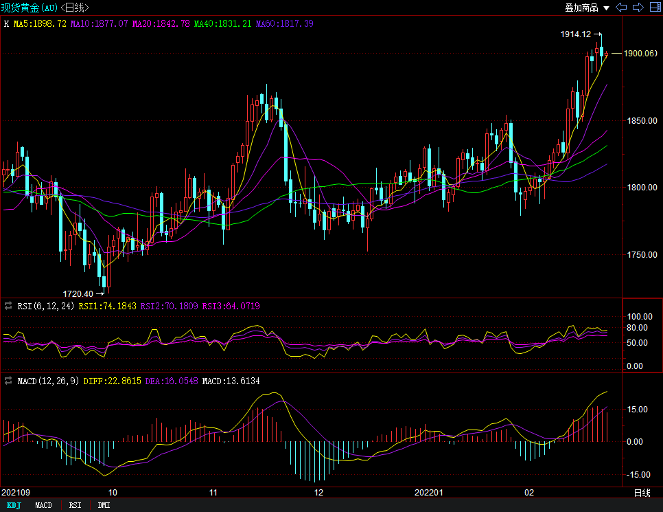 技术面来看,关注超买信号与红柱缩短,金价涨势遭遇了一定的阻力,如果无法持续创新高可能意味着横盘或下行。