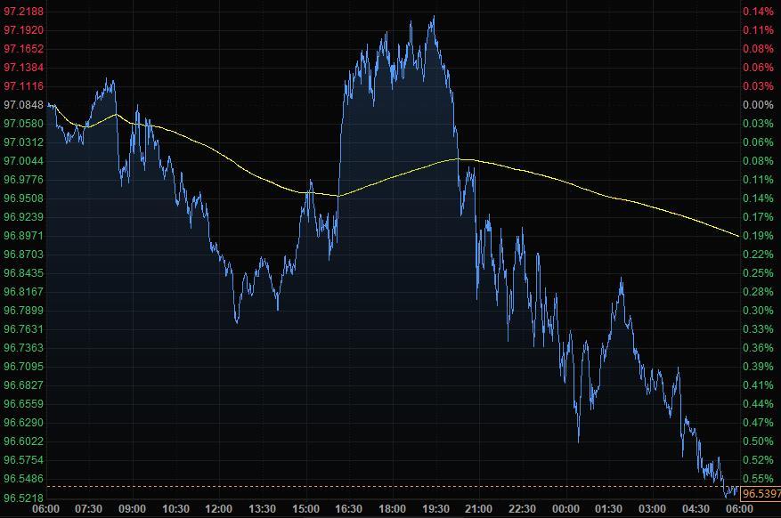 美元指数尾盘跌0.56%至96.53,尽管周五出现回调,美元仍连续第三周走强。在周四跳升之前,美元在近几周一直处于疲软状态,原因是乌克兰紧张局势的加剧引发了人们的预期,即美联储在试图遏制通胀时,可能会不那么积极地收紧政策。周四的上涨将美元推升至2020年6月30日以来的最高水平。