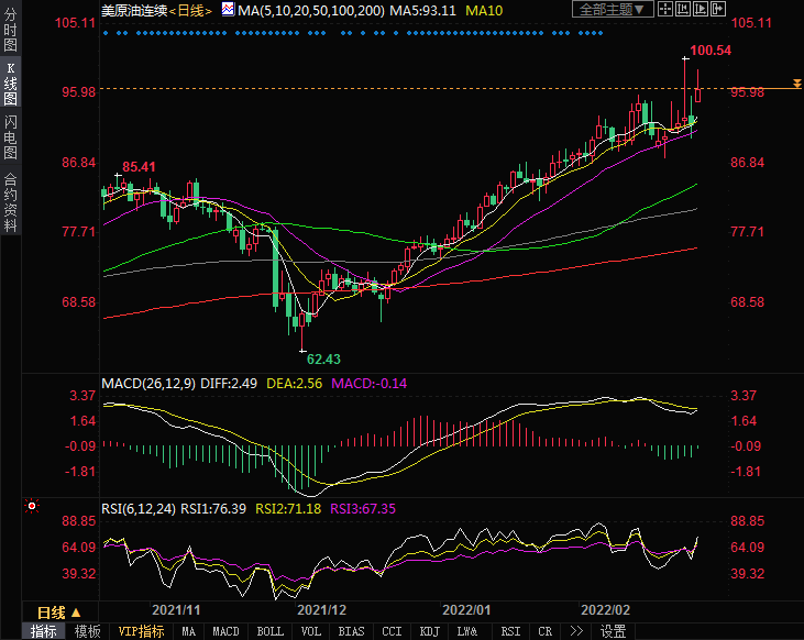 日线级别:油价亚洲时段大涨,市场担忧俄乌局势进一步升级。