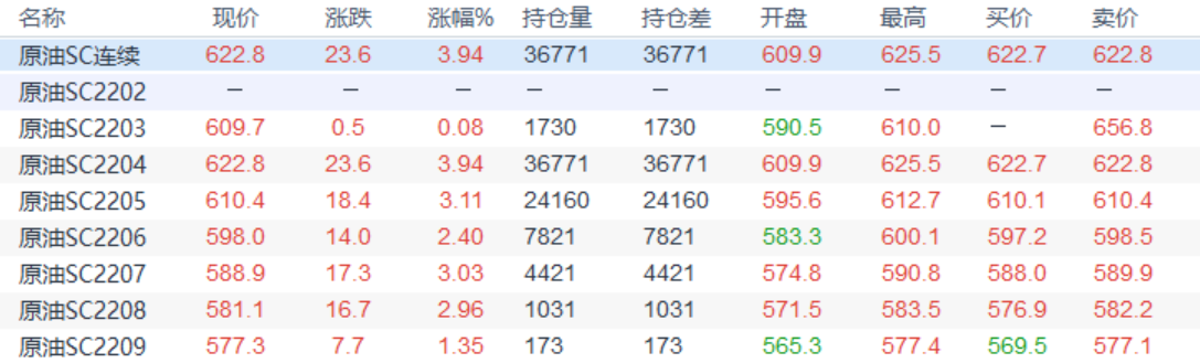 周二(3月1日)上海原油价格上涨3.94%,主力合约2204终盘收于622.8元/桶,涨23.6元/桶,地缘紧张局势升温支持油价,OPEC并没有增产意愿导致供需不平衡支持油价。