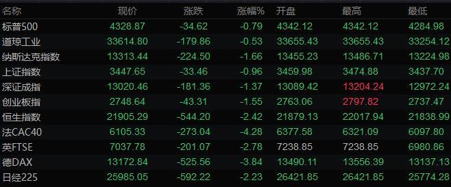 美股收盘情况:标普500指数下跌0.8%,报4328.87点;道琼斯工业平均指数下跌0.5%,报33614.8点;纳斯达克综合指数下跌1.7%,报13313.44点;纳斯达克100指数下跌1.4%,报13837.83点;罗素2000指数下跌1.6%,报2000.9点。