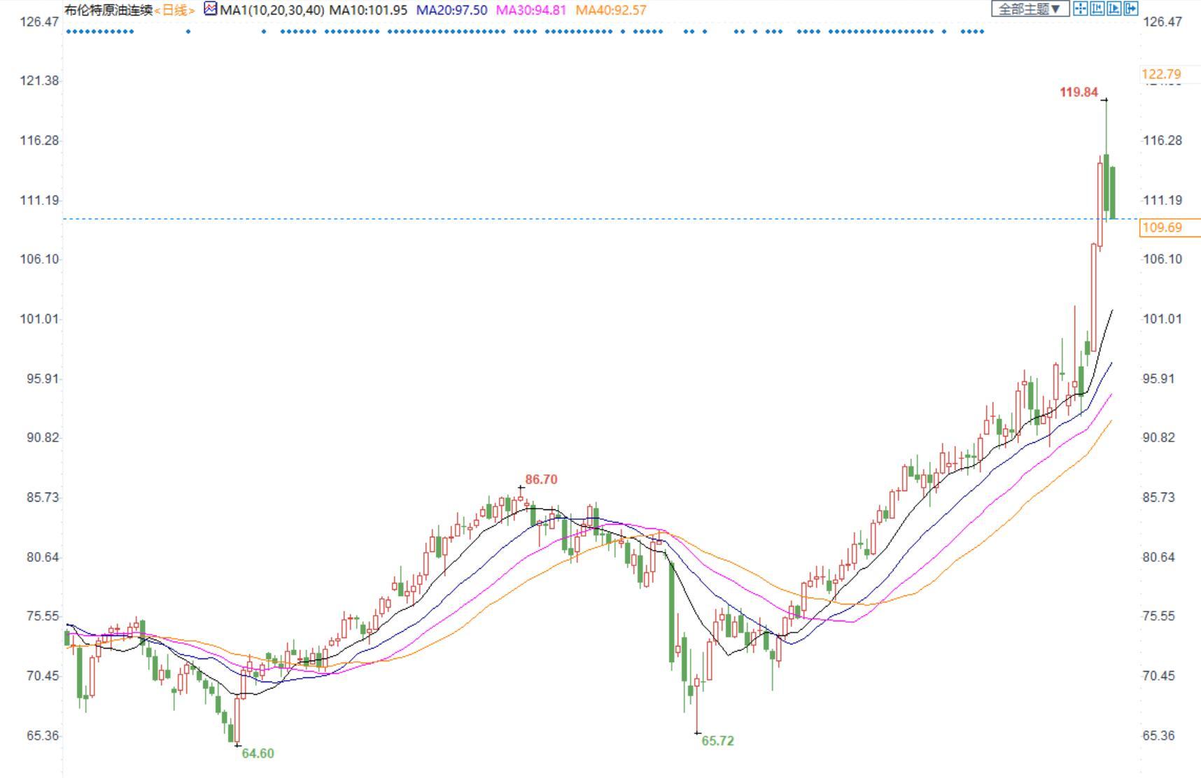 本周四,布伦特原油期货价格自2014年以来首次突破每桶105美元,尽管周五略有回落,但今年仍累计上涨26%。