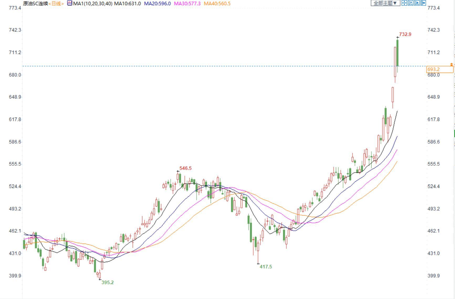 周五(3月4日)上海原油价格小幅上涨0.93%,主力合约2204终盘收于693.20元/桶,涨6.4元/桶,对俄制裁打压供给继续支持油价。