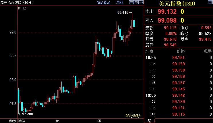 西太平洋银行外汇分析师表示:“由于避险资金流动可能会持续一段时间,而且美联储官员很难明显放慢其政策正常化进程,美元指数升破100只是时间问题。”