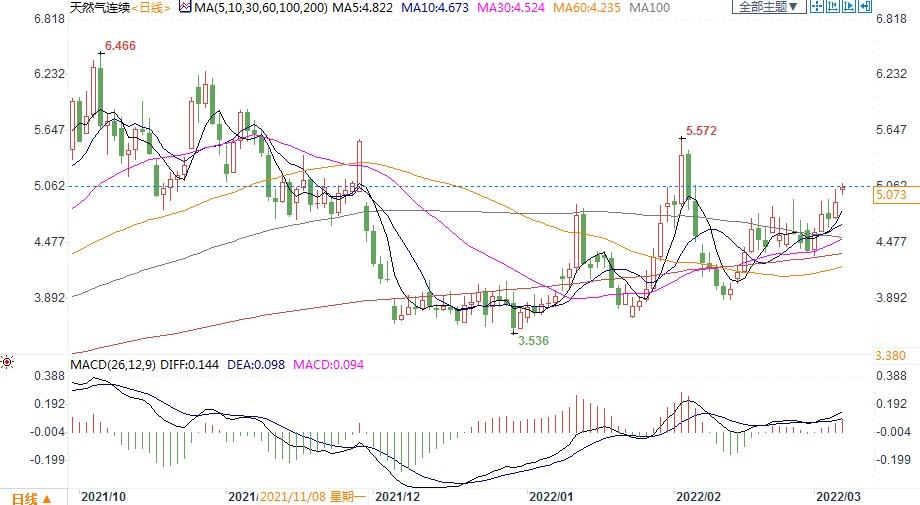 北京时间3月7日14:30 NGNC天然气连续 报每百万英热单位5.052美元