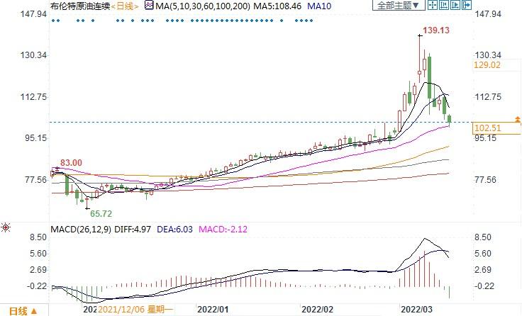 北京时间3月15日13:012 布伦特原油连续 报每桶102.51美元