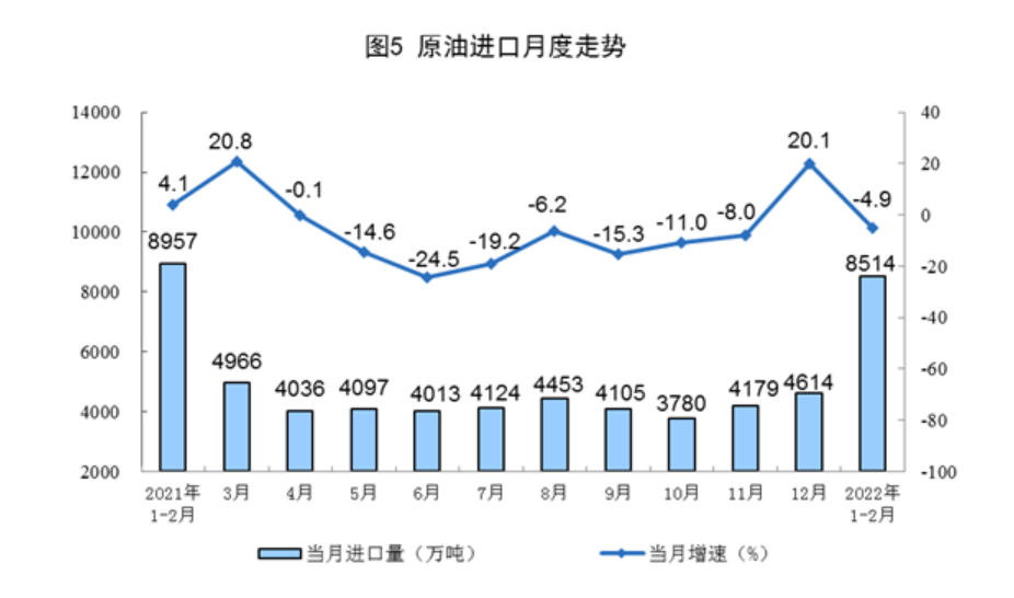 进口数据来源于海关总署,其中2022年1—2月份数据为快讯数据。
