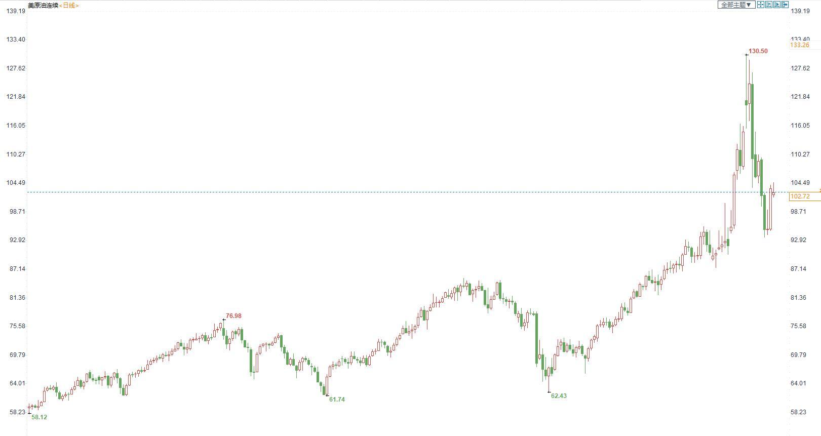 一德期货原油分析师陈通表示,“前半段国际油价的上涨,主要与俄乌冲突有关,尤其是随着欧美等国家陆续对俄实施制裁,其出口的受阻亦引发了市场对原油供应的担忧。”不过,随着后续俄乌谈判所取得的部分进展,市场评估因俄乌冲突而受扰的原油供应前景可能出现改善,加之伊核谈判的积极进展以及阿联酋增产表态等诸多因素共同叠加,致使国际原油价格高位大幅回落。当前受俄罗斯原油出口实质性受限以及全球原油市场闲置产能不足,原油市场的整体供应形势仍旧非常严峻,预计国际原油价格中期仍将维持在100美元/桶之上。