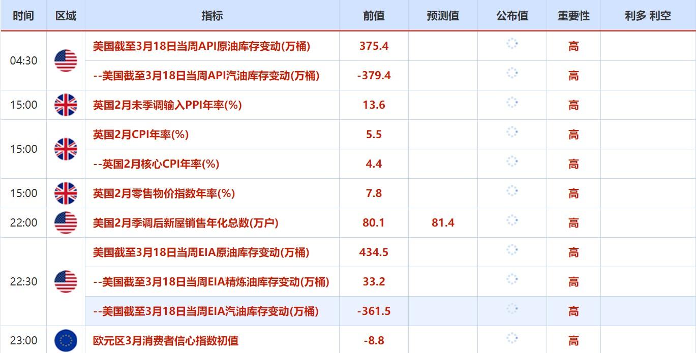③周三(3月23日)关键词:美国API和EIA原油库存变动,英国2月CPI