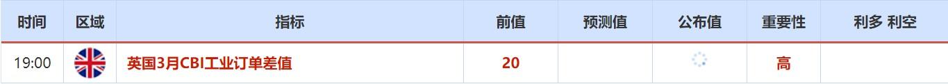 ②周二(3月22日)关键词:英国3月CBI工业订单差值,美联储鲍威尔,欧洲央行副行长金多斯,纽约联储主席威廉姆斯