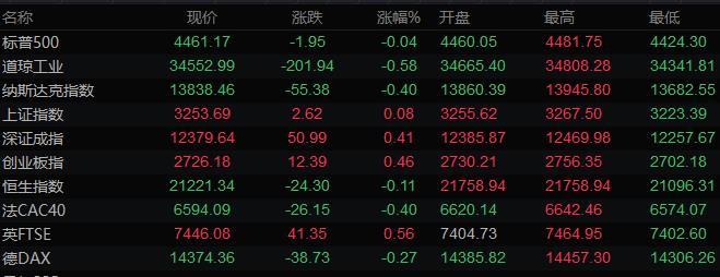 美股收盘情况:标普500指数基本持平,报4461.18点;道琼斯工业平均指数下跌0.6%,报34552.99点;纳斯达克综合指数下跌0.4%,报13838.46点;纳斯达克100指数下跌0.3%,报14376.09点;罗素2000指数下跌1.0%,报2065.94点。