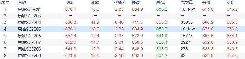 周一(3月21日)上海原油价格收盘上涨18.6,涨幅2.83%。主力合约2205终盘收于676.1元/桶,涨18.6元/桶。油价收涨,主要受到市场对供应忧虑的支撑。国际能源署呼吁采取紧急措施减少能源需求。