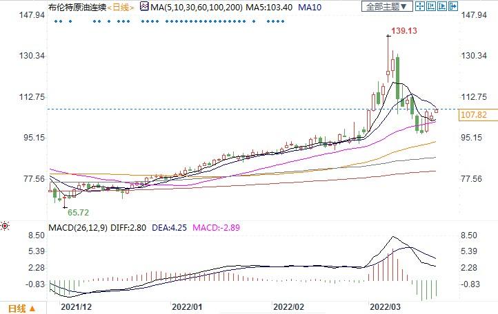 北京时间3月21日13:30 布伦特原油连续 报每桶108.25美元