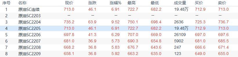 周二(3月22日)上海原油价格收盘上涨46.1,涨幅6.91%。主力合约2205终盘收于713.0元/桶,涨46.1元/桶。油价收涨,主要受到市场对供应忧虑的支撑。欧盟外长会议商讨加码对俄制裁,继续激发了对原油供应忧虑的担忧。