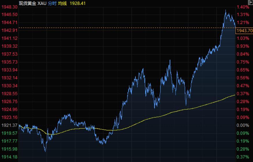 金价周三上涨,现货黄金一度涨逾1%,刷新3月17日以来高点至1948.30美元/盎司,难以控制的通胀和日益加剧的乌克兰危机推动了对避险黄金的需求,但美元走强和国债收益率处于高位限制了涨幅。