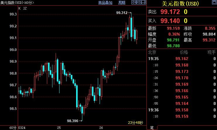 北京时间19:35,现货黄金下跌1.45%至1929.53美元/盎司;COMEX期金主力合约下跌1.30%至1928.8美元/盎司;美元指数上涨0.38%至99.165。