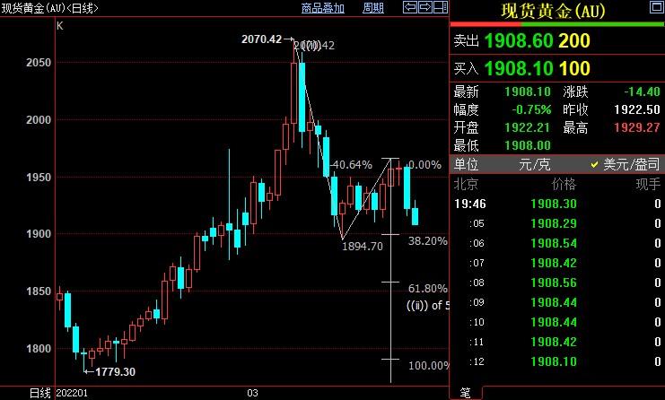 现货黄金下看1899美元