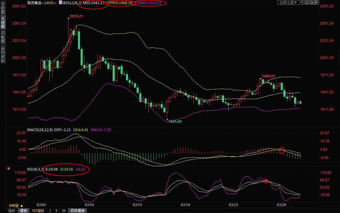鉴于KDJ也发出短线超卖信号,若金价坚守布林线下轨支撑,并反弹至布林线中轨1941.20上方,则削弱短线看空信号。