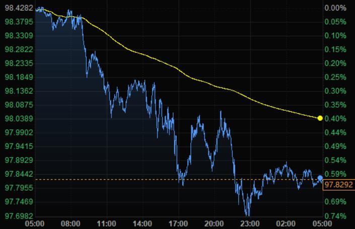 美元指数尾盘下跌0.61%,至97.82,早些时候触及3月4日以来的最低水平。美元指数下跌在很大程度上是由于欧元走强,欧元在周二已反弹,此前俄罗斯在和平谈判中承诺减少对基辅的攻击。
