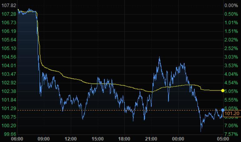 美油跌逾6%,收于略高于100美元的水平,原因是美国总统拜登宣布了有史以来规模最大的美国战略石油储备释放计划,并呼吁石油公司增加开采量以加大供应。
