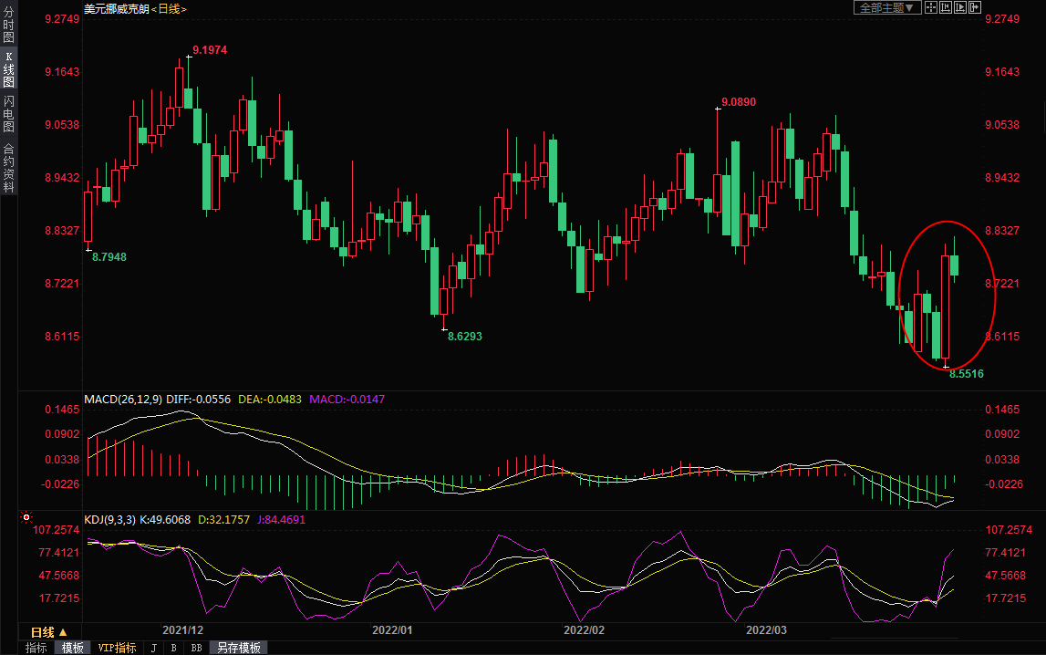 (美元兑挪威克朗日线图)