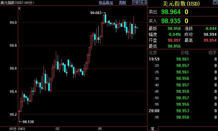 北京时间19:59,现货黄金下跌0.26%至1927.42美元/盎司;COMEX期金主力合约下跌0.15%至1931.3美元/盎司;美元指数下跌0.04%至98.956。