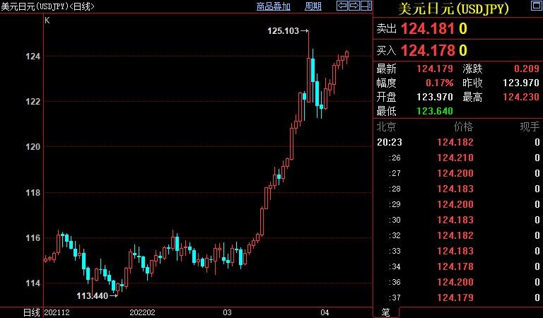 美元兑日元上涨1.32%至124.169。除了美元走强带来的利空,日本央行似乎乐意看到弱势日元,对日元近期下跌会推高进口成本,进而损及日本经济的观点不以为然。