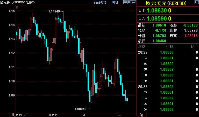 欧元兑美元下跌1.60%至1.0867,创一个月新低至1.0847。俄乌冲突没有谈判休战的迹象。乌克兰希望对俄罗斯实施具有足够经济破坏力的制裁,以结束其战争。据消息人士透露,欧盟对俄罗斯煤炭的禁令预计8月中旬开始生效。