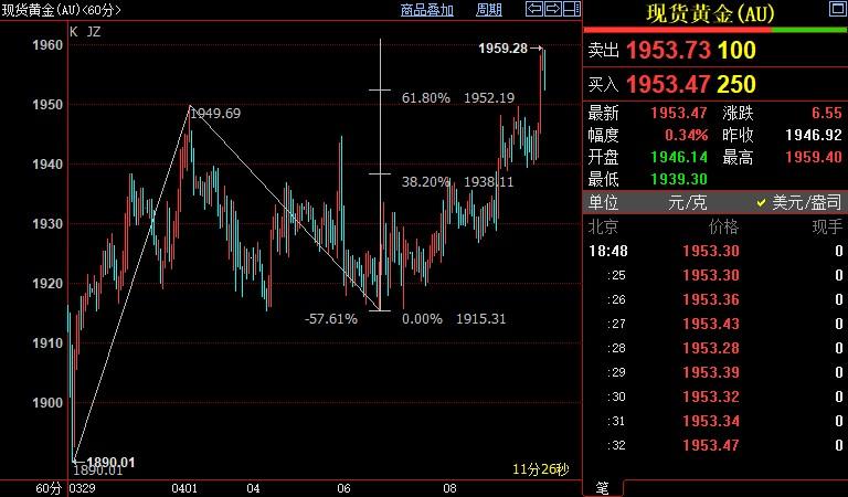 现货黄金上看1975美元