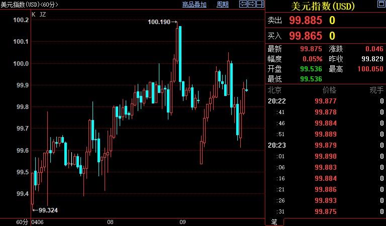 北京时间20:23,现货黄金上涨0.76%至1962.47美元/盎司;COMEX期金主力合约上涨1.09%至1966.8美元/盎司;美元指数上浮0.04%至99.888。