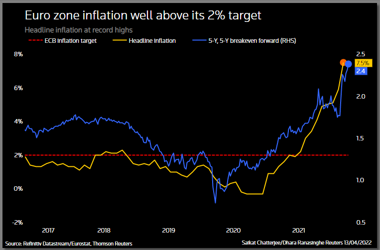 欧洲央行是主要央行中最谨慎的一家。周四坚持缓慢撤回非常规刺激措施的计划,权衡了对创纪录高通胀的担忧和乌克兰战争可能使欧元区经济陷入衰退的风险。